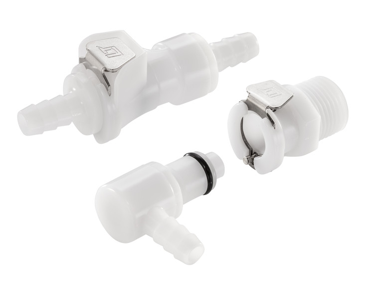 이 1/4" 유량의 범용 커플링은 내구성이 좋은 내추럴 아세탈(POM) 열가소성 플라스틱으로 제작됩니다.